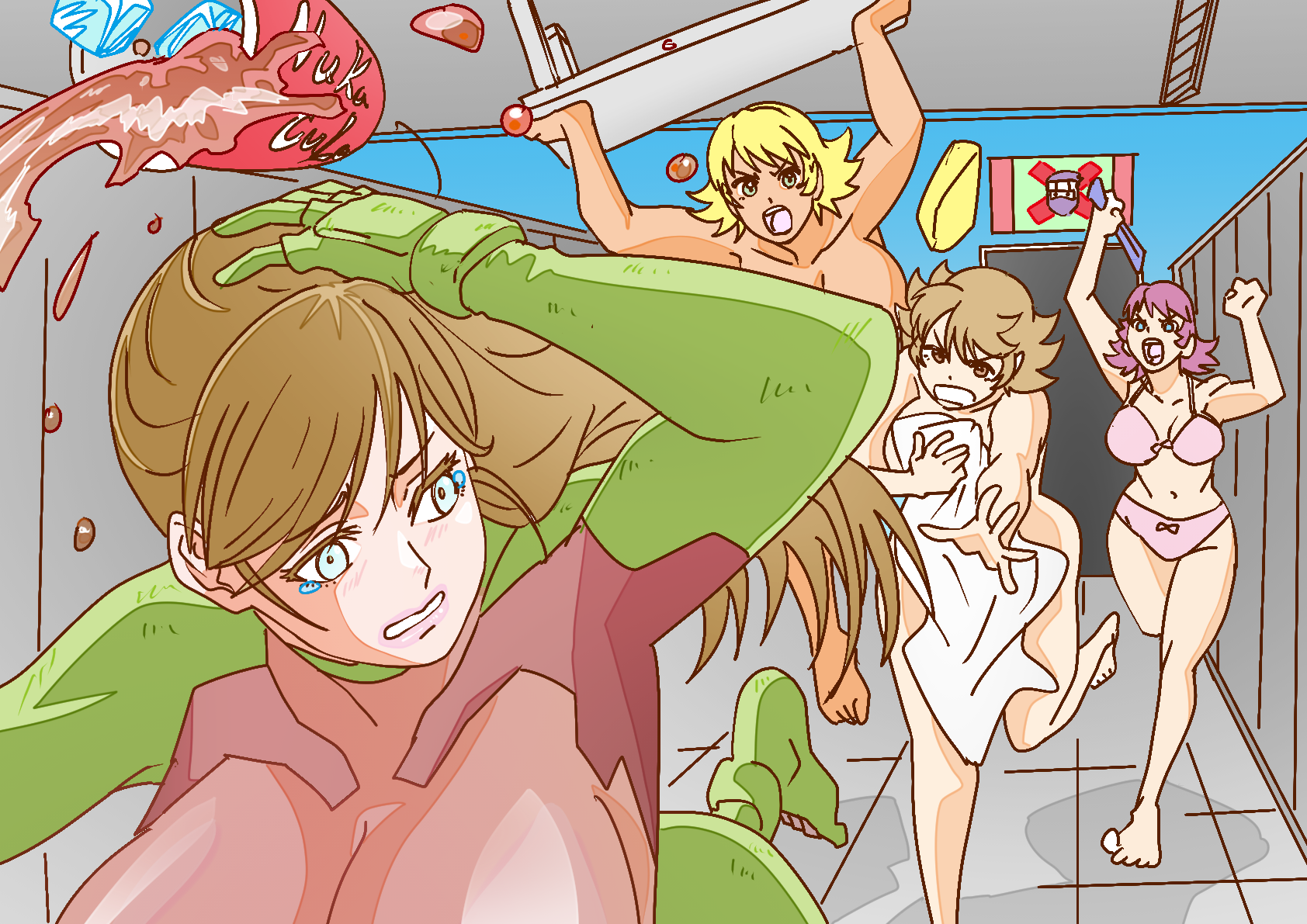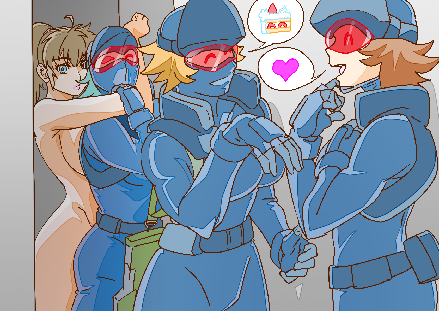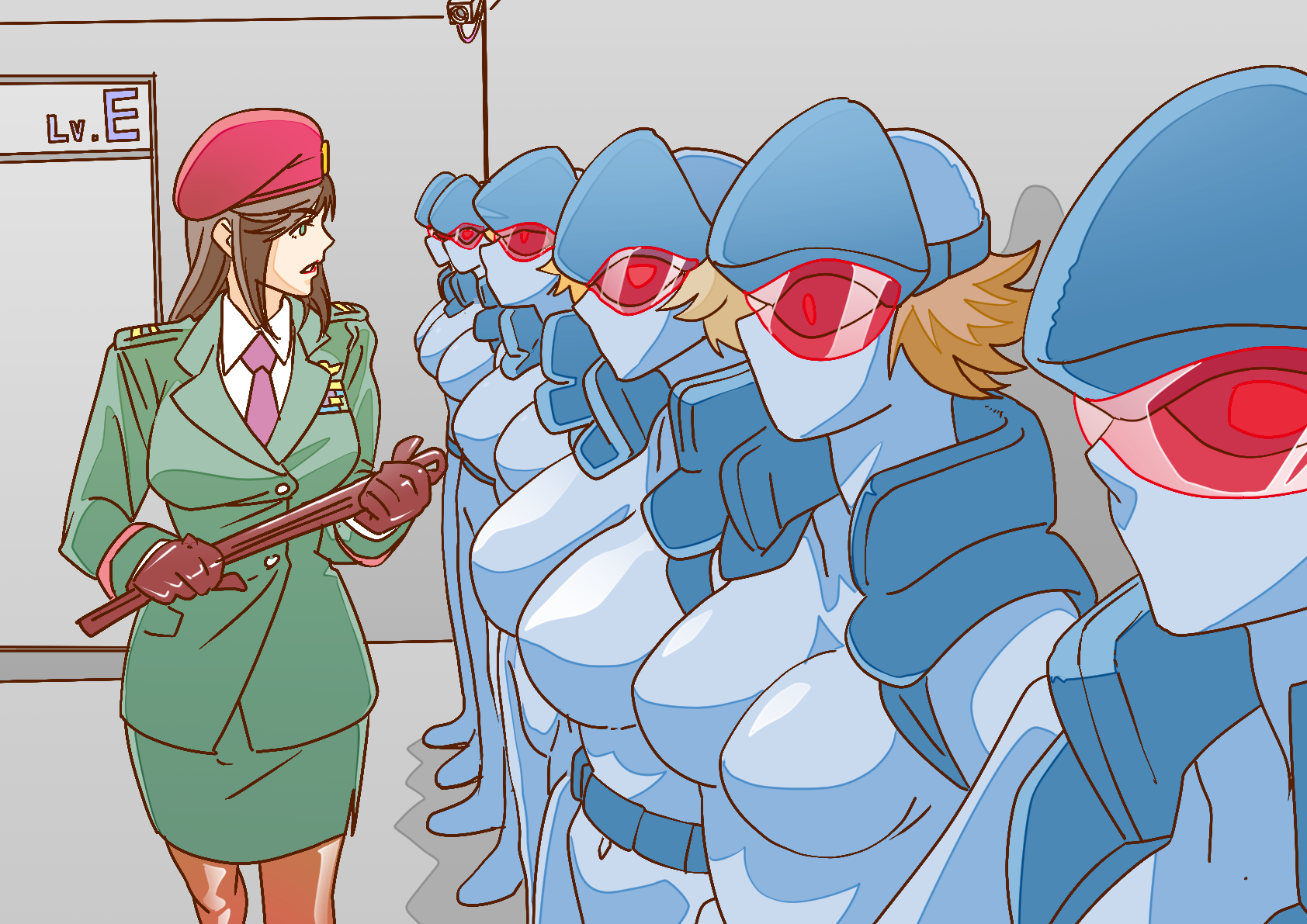 This artist features a lot of zakos in tight, blue uniforms. They remind me a lot of female Cobra soldiers from GI Joe. They’re often fighting with the artist’s protagonist OC, with a lot of the pieces being homages to various action movies and anime.