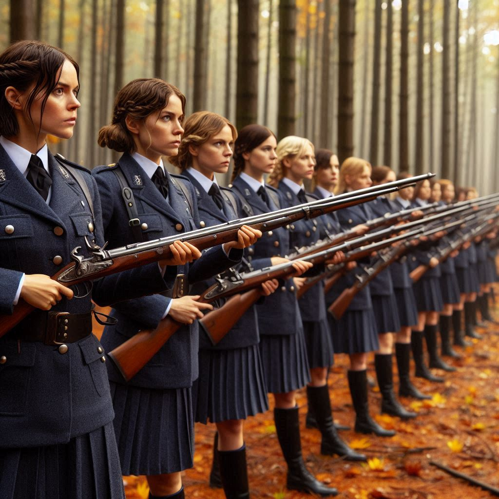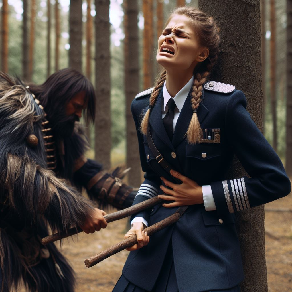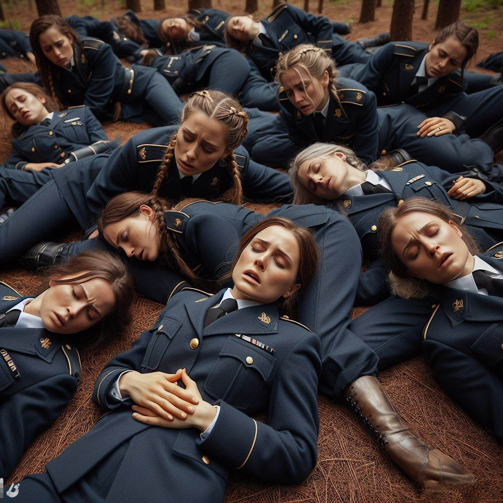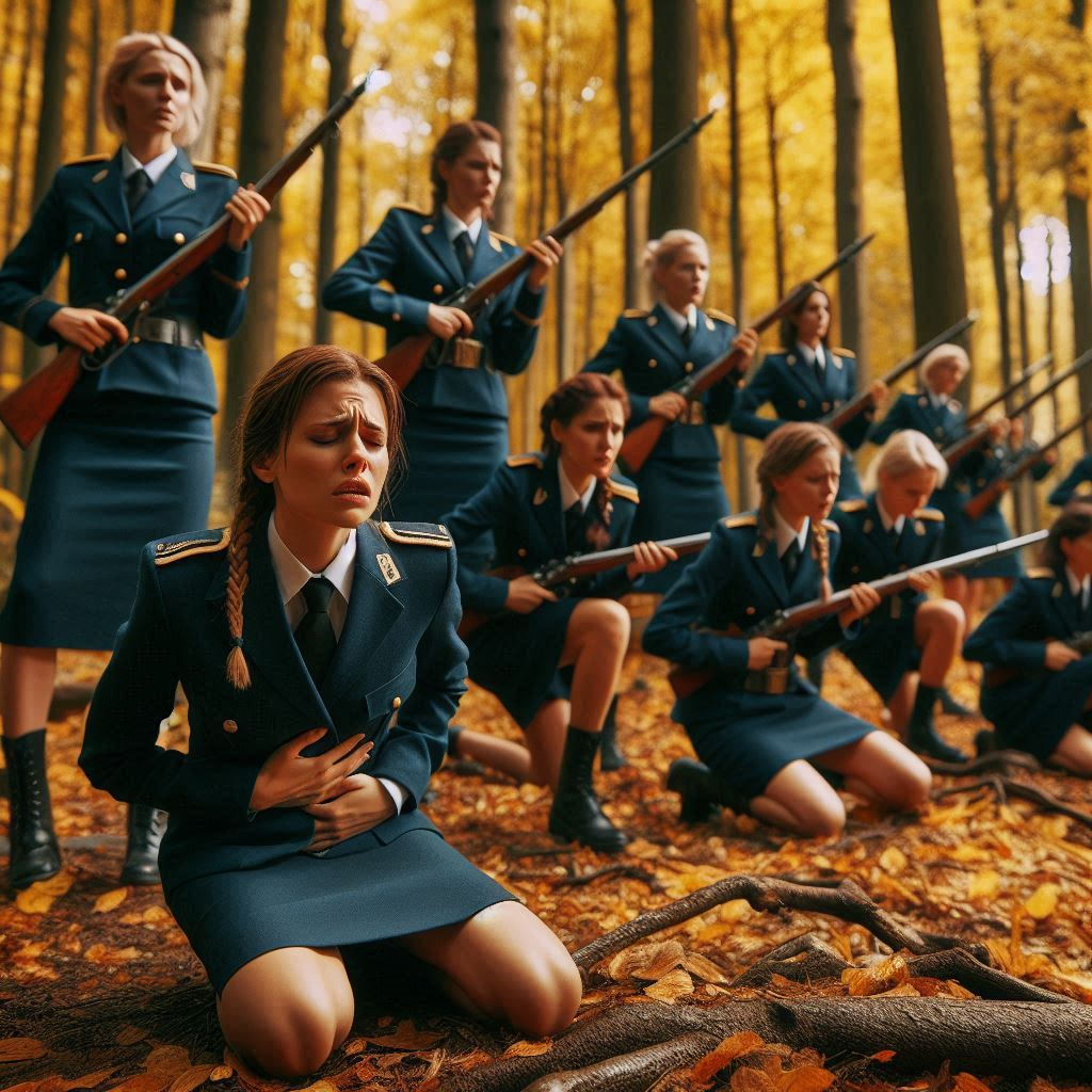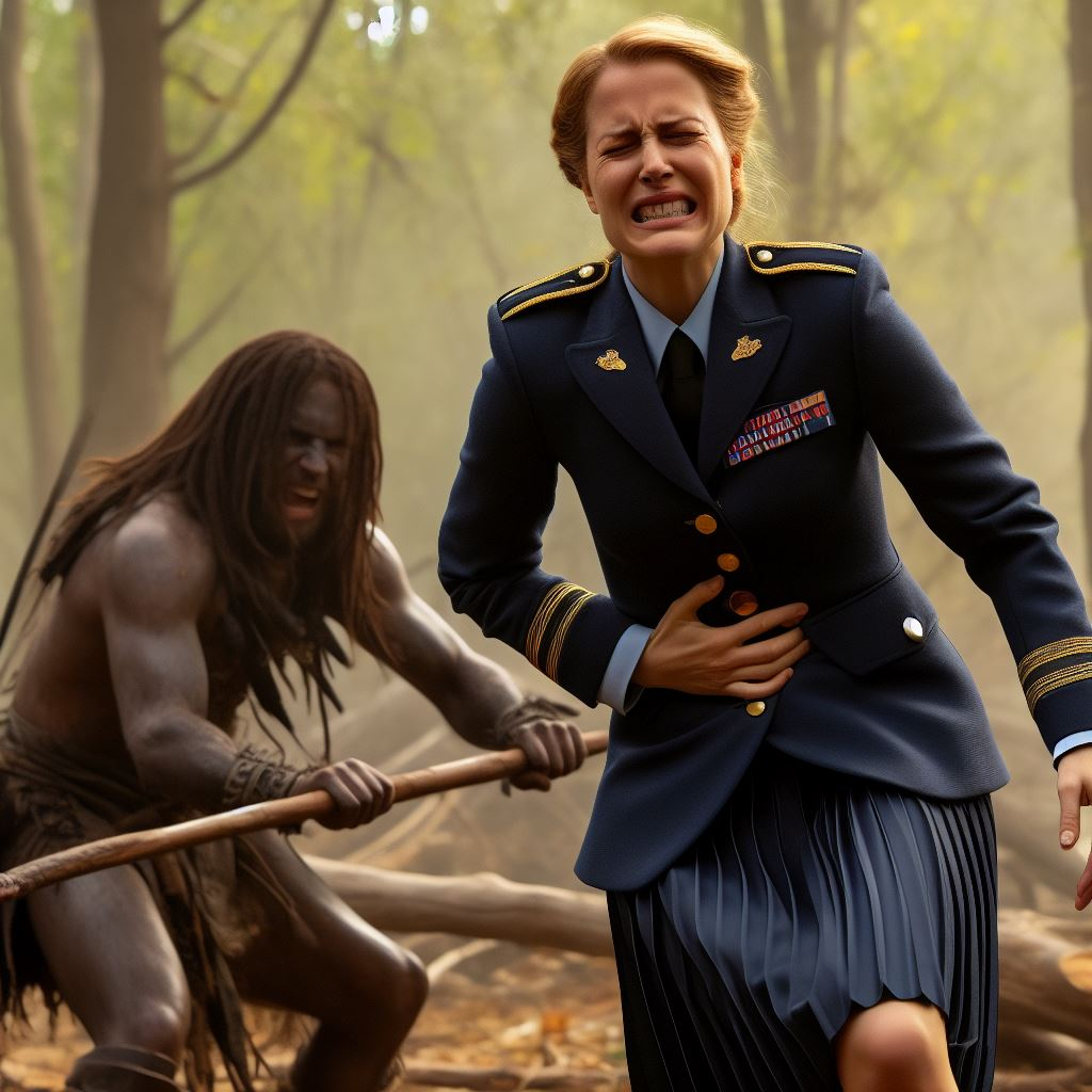 These are some of my AI generated ones from a few months back. I've always loved women in full, modern military dress uniforms - buttoned up jacket, neck tie, skirt, bonus points for epaulets, tassels / cords, etc. So it only makes sense for my zakos to dress as such. That combined, with them getting hit in the belly for maximum pain, is what I like to see. Bonus points if their enemies are much fewer in number and much more primitive, so it's that much more humiliating I guess, lol.