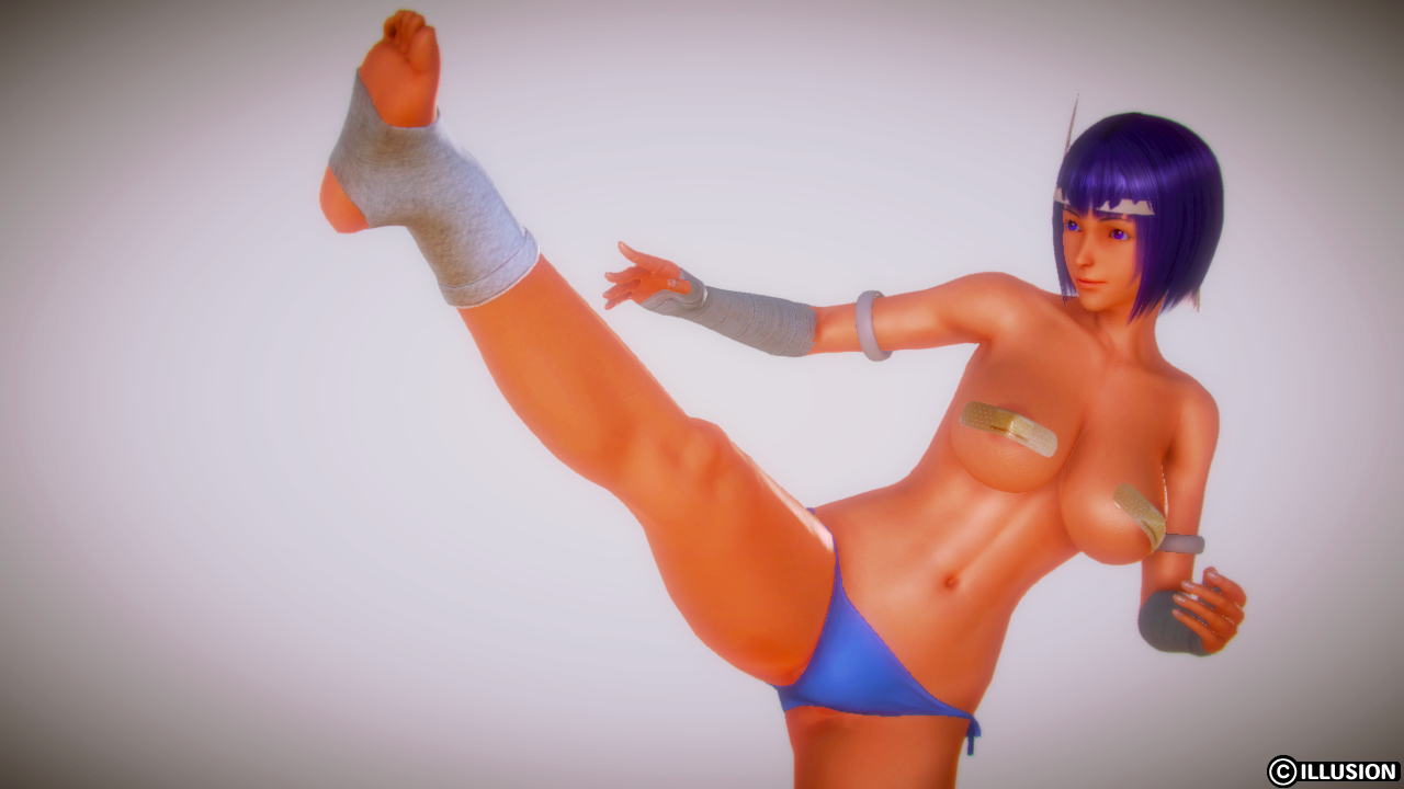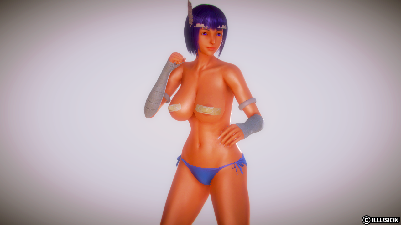 The enforcer/muscle of the group, a muscular tanned pinkette with a camo bikini and a pair of black armbands, armed with wrestling moves. Despite her big size and muscles, she's actually pretty slow. The protagonist used his stun gun to knock out the pinkette, but due to her big size, she kneeled on the sand with her head lowered. She appears to be sweating after being knocked out