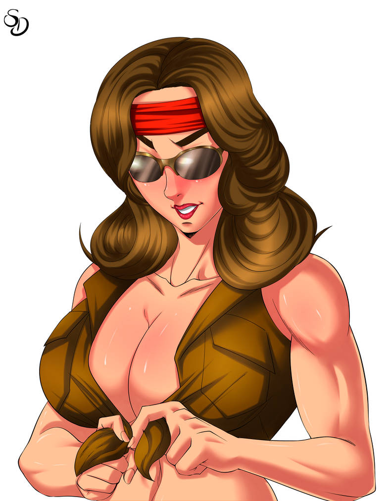 Would love at least 2 more pics, one of her tits shown, then she getting shot in them, maybe a 3rd of her dead on the ground tits hanging loose. Could say she was cornered and offered herself for sex if she would be spared, but the good guy just gunned this big titted hottie down anyway.I commissioned SexyDarkBR on Deviant Art to do Deirdre Hansen, one of the female terrorists in Maximum Force, about to untie her top and show off her boobs.