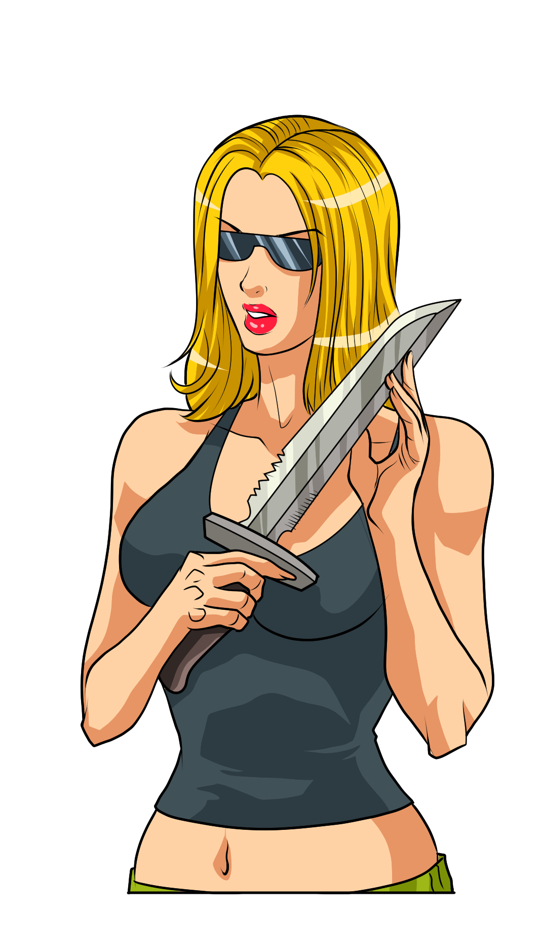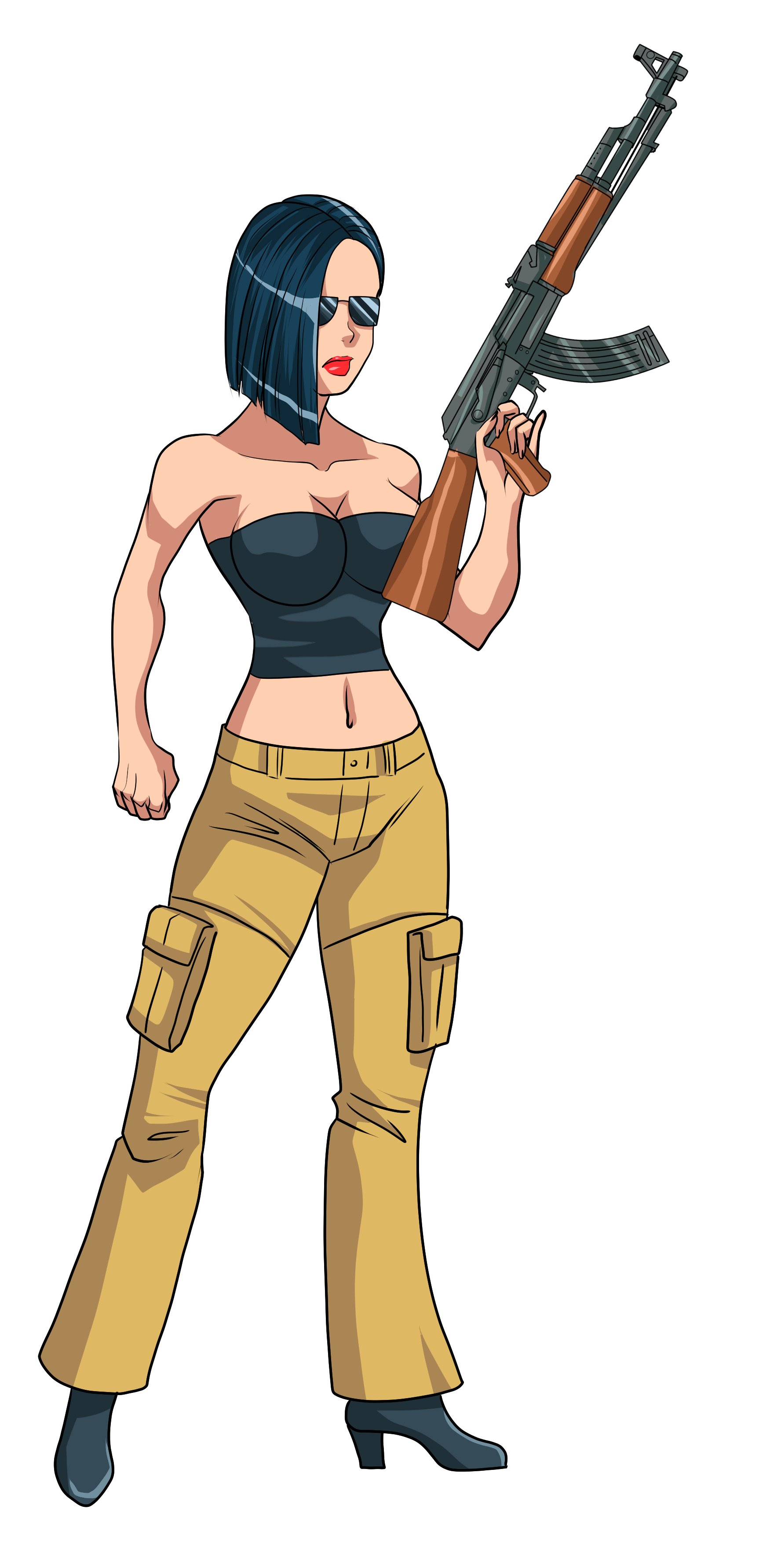 Some more Niki Dominatrix fan art from Jardel Cruz. Shooting pose, chest shot, crotch shot, shooting behind a barrel and being blown up by the barrel exploding.