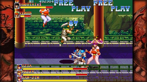 Hey all, it's been a while but I finally found some free time to do a bit of art. The zako this time is the assassin Mei-Ling (or San-Jin) from the Tenchi wo Kurau II (Warriors of Fate) arcade game. She first appears as the 3rd level boss along with her co-assassins Mei-Yu and Mei-Mei. All three of them are demoted to zako status later on in the game. The zako world has its fair share of kung-fu themed baddies and these girls are definitely high on the list of my personal favourites. Other notable ones would include the cheongsam girl from Genkido Advance and the trio from the violent (and Rapey) Fatal Fight games. As usual, screenshot refs and the art: