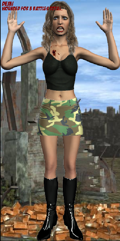 We had finally taken control of the building, all we had to do was clean around it. Rachel wounded an enemy, who surrendered, the others followed, and soon all the survivors had surrendered, except for the enemy leader and another rebel, but they were captured a few hours later.