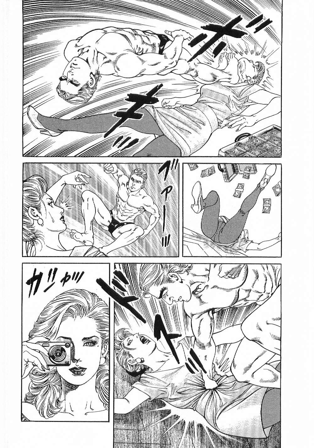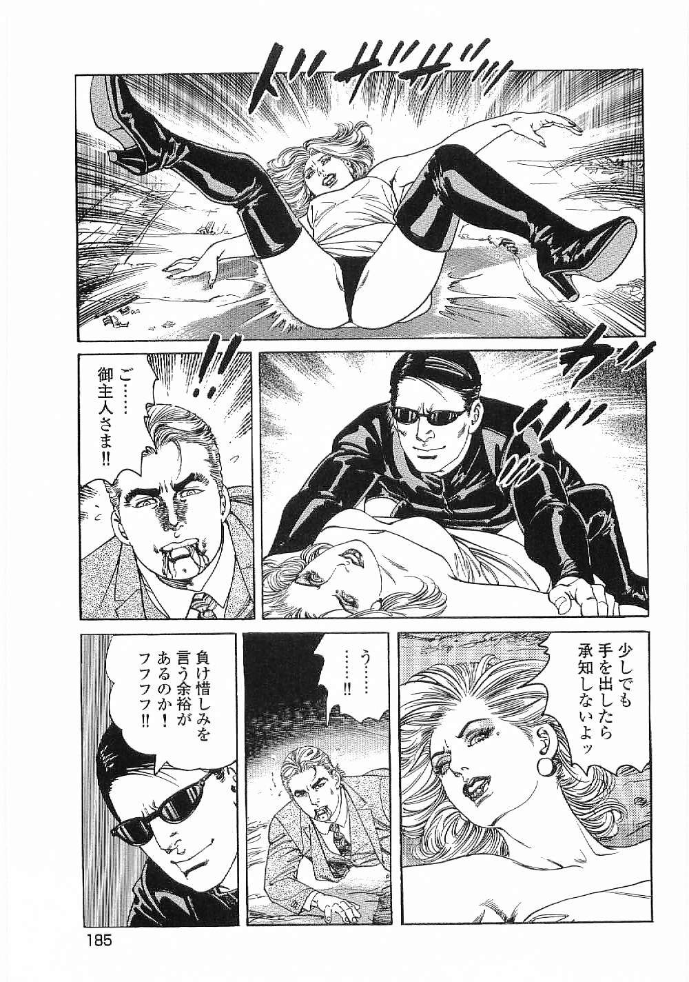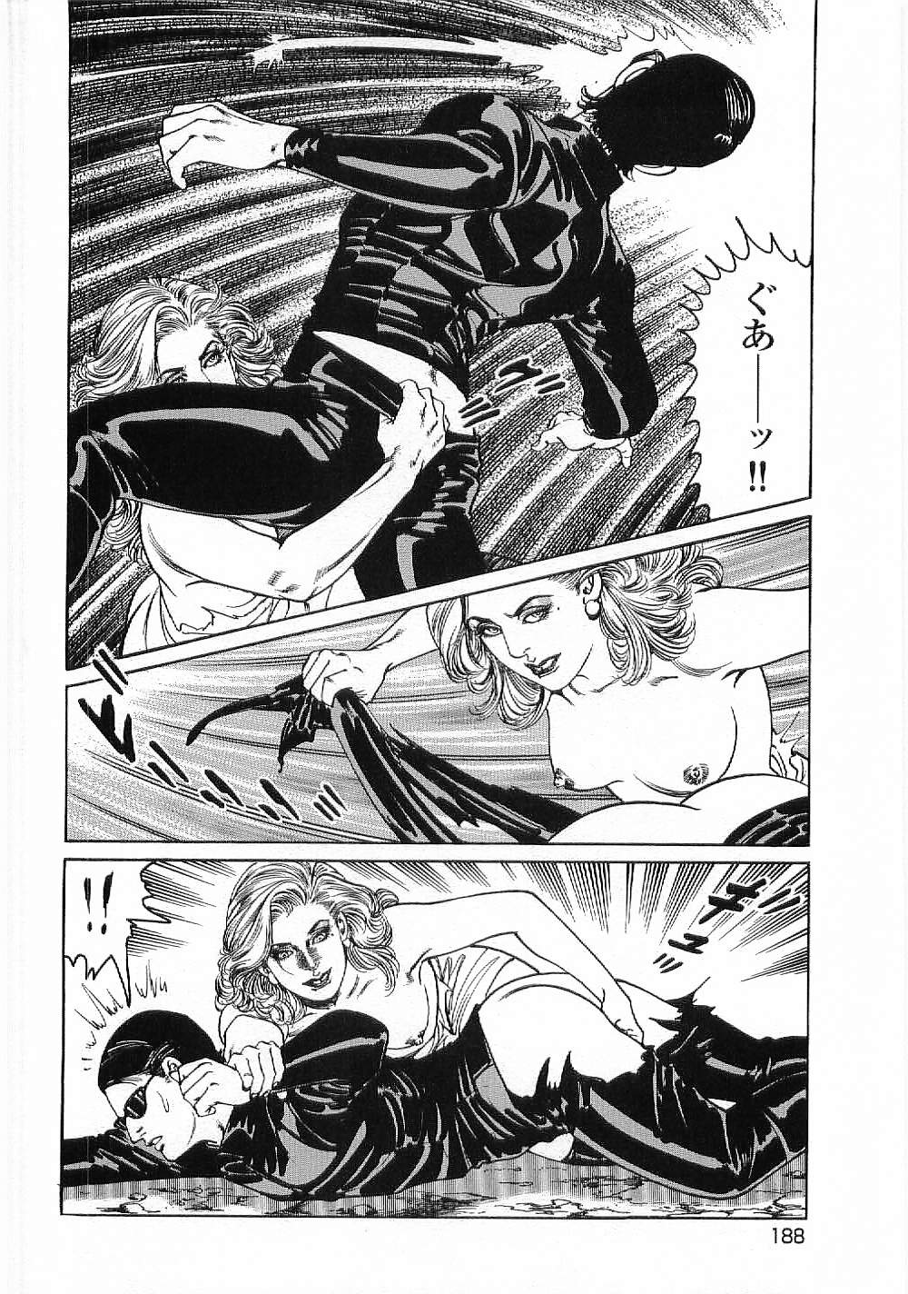 Yukarisu is a shocker who infiltrated a restaurant run by Mitsuba who is under suspicion of having knowledge about the shockers. Eventually, Yukarisu become in love with Mitsuba and beat up any female acquaintance get neared Mitsuba. Mitsuba overheard Tanzaburo (protagonist) and Yuriko (Tackle) talking about the Shockers and introduced himself and told them about his experience with a shocker. Yukarisu had noticed Mitsuba was sitting right next to Yuriko, who is very attractive, and got jealous and decided pose as a student and lured Yuriko, who work as a teacher, into a storage room and transformed into a Shocker in attempt to kill Yuriko. Some Ryona from both sides.
