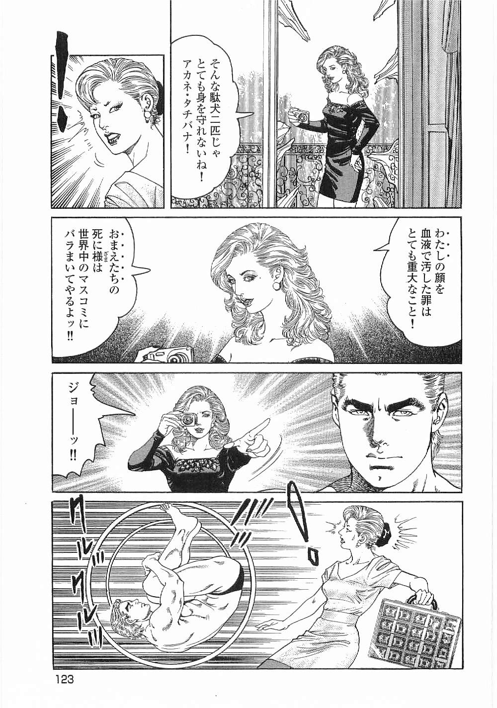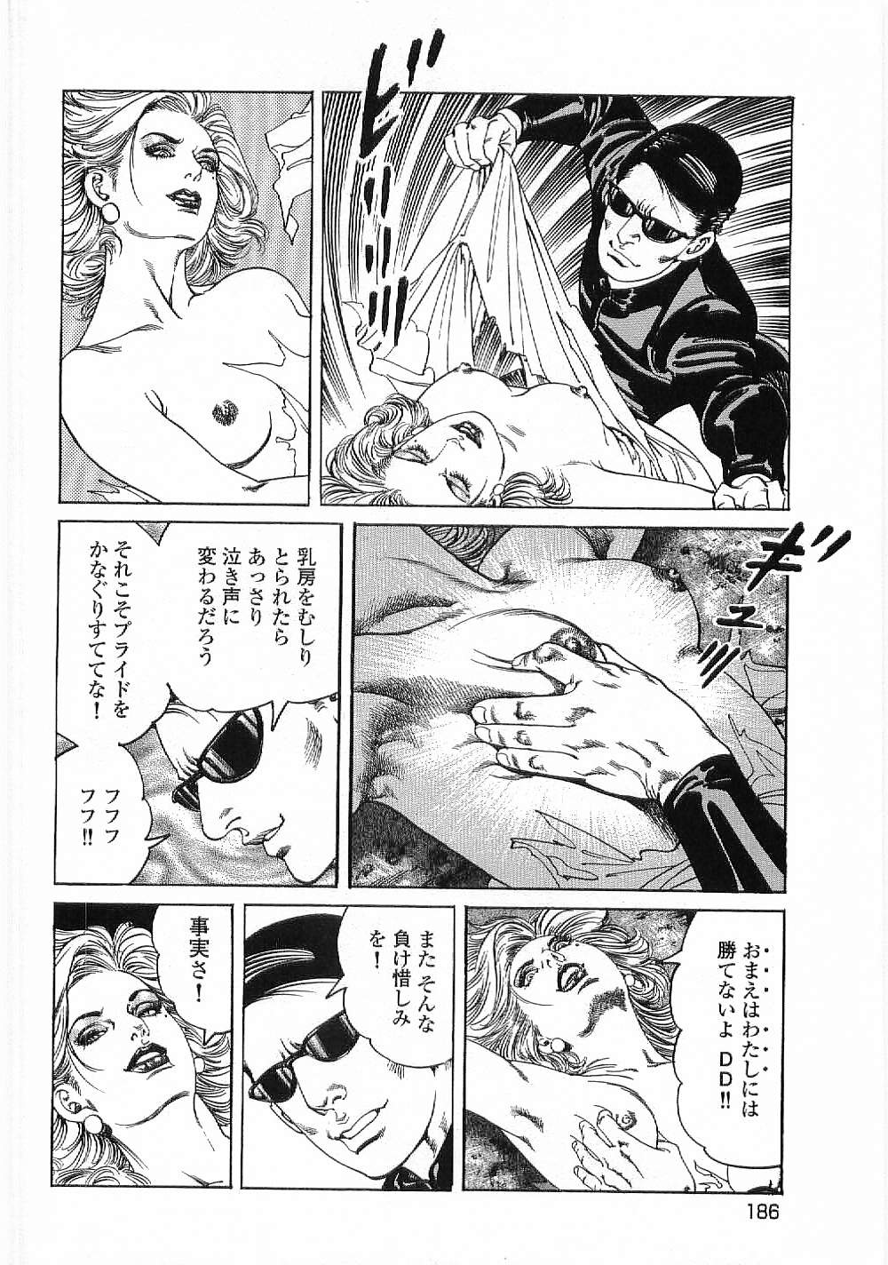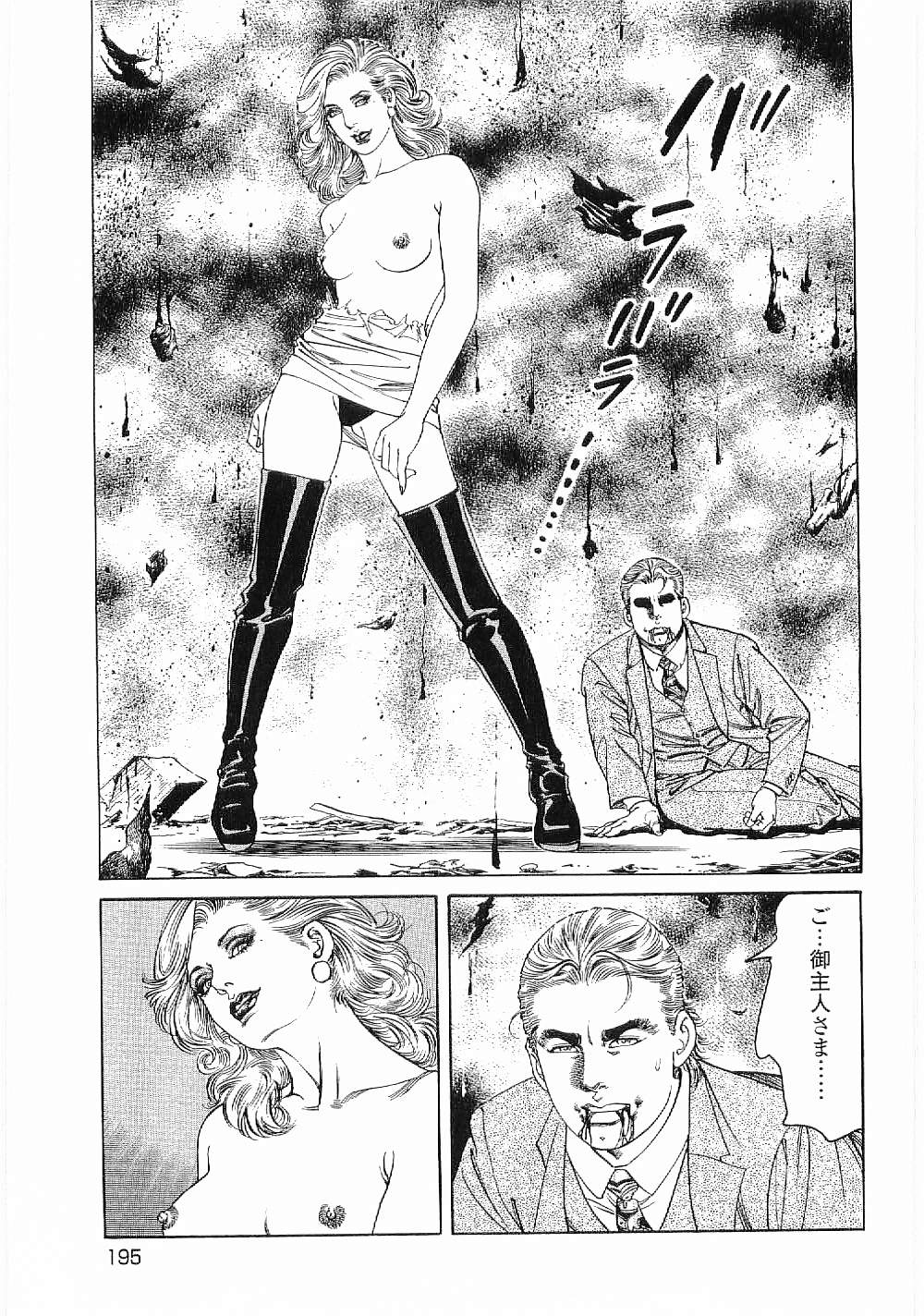Yukarisu is a shocker who infiltrated a restaurant run by Mitsuba who is under suspicion of having knowledge about the shockers. Eventually, Yukarisu become in love with Mitsuba and beat up any female acquaintance get neared Mitsuba. Mitsuba overheard Tanzaburo (protagonist) and Yuriko (Tackle) talking about the Shockers and introduced himself and told them about his experience with a shocker. Yukarisu had noticed Mitsuba was sitting right next to Yuriko, who is very attractive, and got jealous and decided pose as a student and lured Yuriko, who work as a teacher, into a storage room and transformed into a Shocker in attempt to kill Yuriko. Some Ryona from both sides.