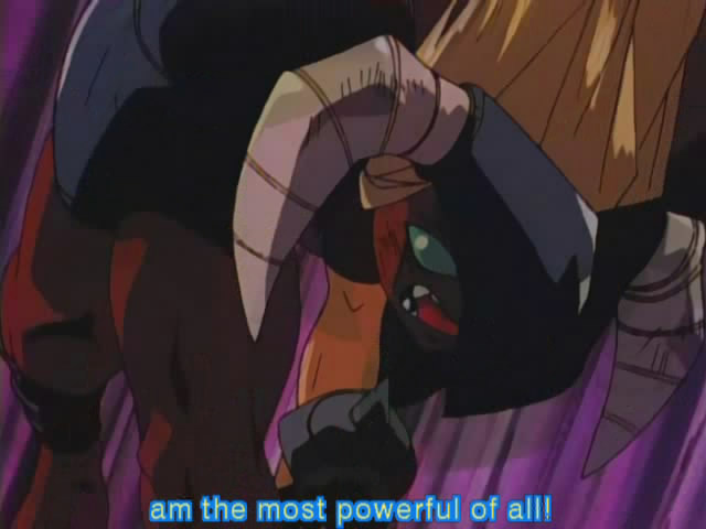 Apparently Darkstorm is an equal opportunity evil overlord, as he employs female guards too! (from the Visionaries cartoon). We only see this guard gal tied up, and she and her friends threaten the heroes that Darkstorm will punish them for escaping, to which they remind the guard how their boss might punish THEM for letting the heroes escape, which makes them go quiet.