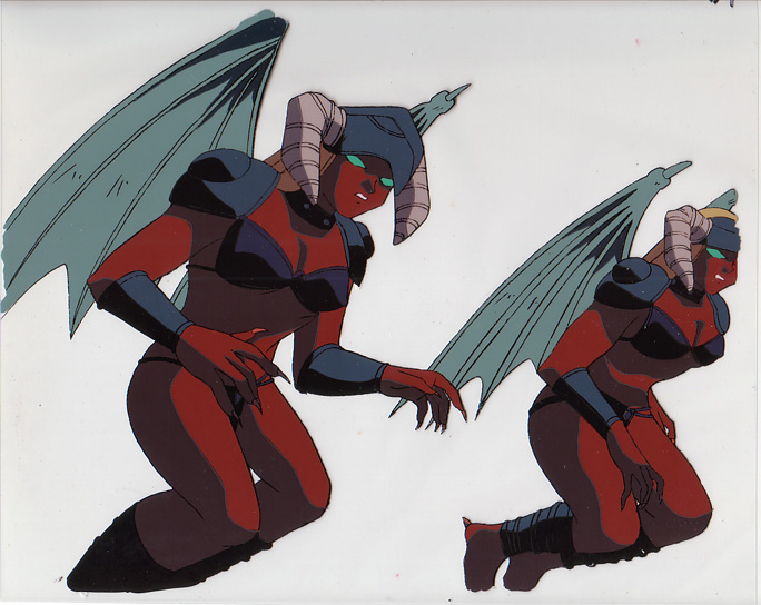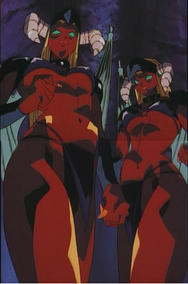 Dunno if I anyone posted these (or has fanart of them) ... from Dragon Pink, I think episode 1? The water demon boss gal awakens these two sexy red gargoyles. They are pretty large too, bigger than humans, and nicely muscled - with rather revealing bikini armor. :) One gets grabbed and head-first-slammed to the ground, ending up in an embarassing Aika-like pose, the other gets her arm cut off - and then the mage elf girl uses a spell to shatter them to stone pieces, sadly.