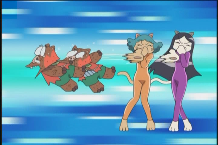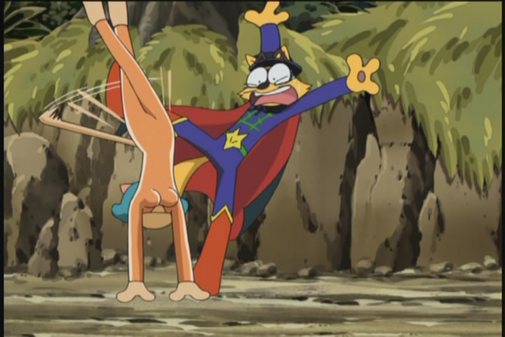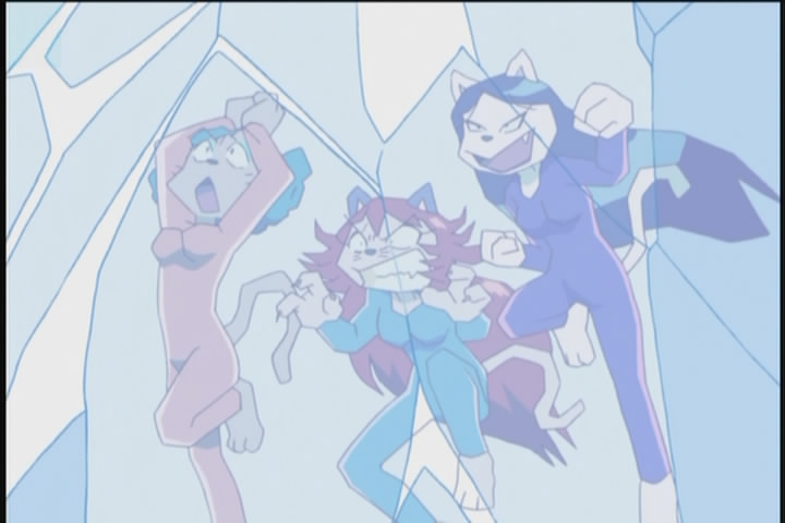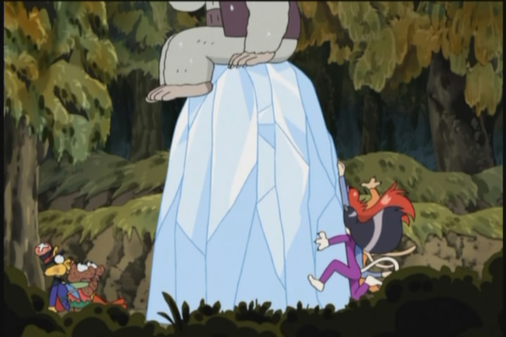Of course Zorori does not fight them as he refuses to fight beautiful girls, so they beat him up badly, but in the end they get face-slammed and then frozen in a block of ice by a yeti (his puns are so terrible they freeze people).