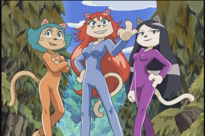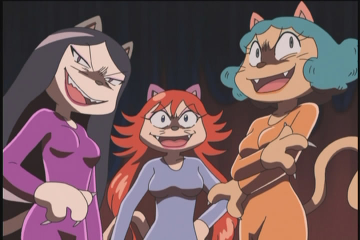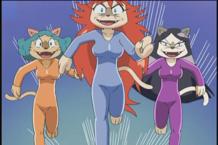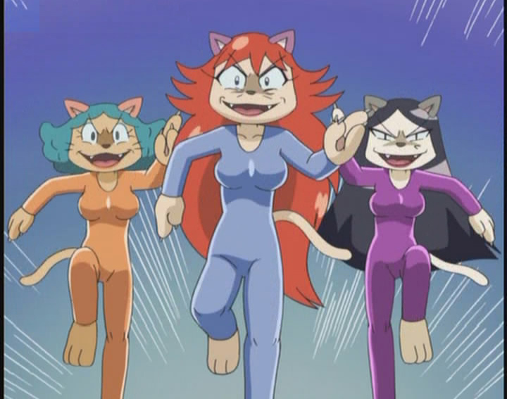 These three kinda qualify, from the anime Kaiaketsu Zorori, they are just called Bururus Angels (Bururu being a money-hungry pug villain). They are obvious Charlie's Angels parodies, but also parodies of an anime heroines called Cat's Eye.