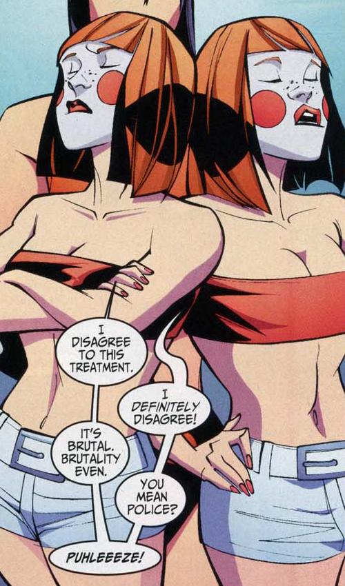 It's even better in Justice League Unlimited's time-travel episode where the Dee Dee twins gain the ability to clone themselves, seemingly without limit. :) Man I wish someone did a bodypile pic with them... could be done with this 3D program people use in the Honey something thread.Aahhh they look kinda cute!! To top it off, their midriffs are pretty sexy. I remember watching Batman Beyond when I was a kid, and it what led me to the zako fetish. I often got an erection when I see these two cuties getting beaten up