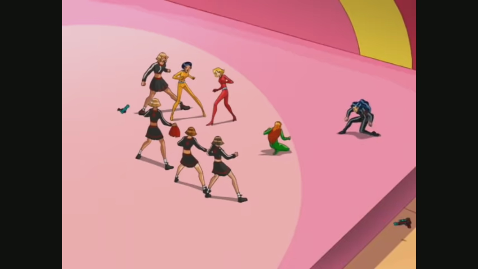 Totally Spies catered to all sorts of fetishes, no surprise femmebots were in that list... And of course, water just easily defeats them.