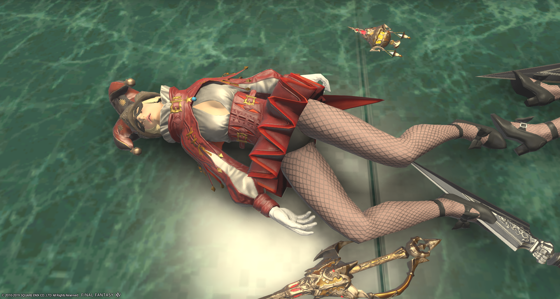 Wow the one in the stockings and frill skirt is awesome. Quite the cleavage! Are they some heralds of the court? They are dressed like that