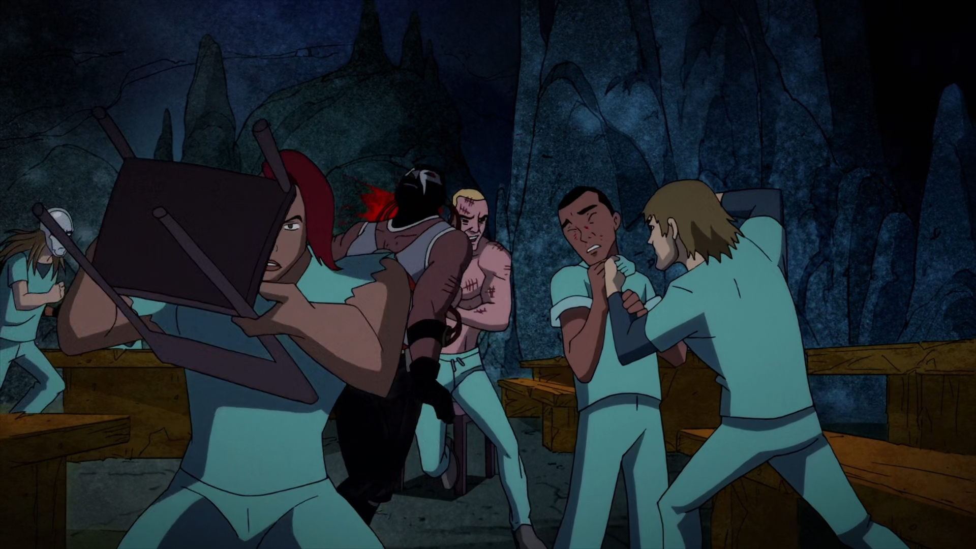 Harley Quinn and her squad take on a bunch of amazon zakos. They're dispatched fairly perfunctorily, but we do get the girls making sure to finish off downed enemies, which is quite rare: