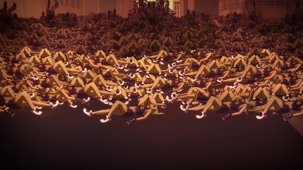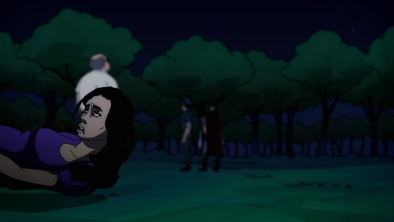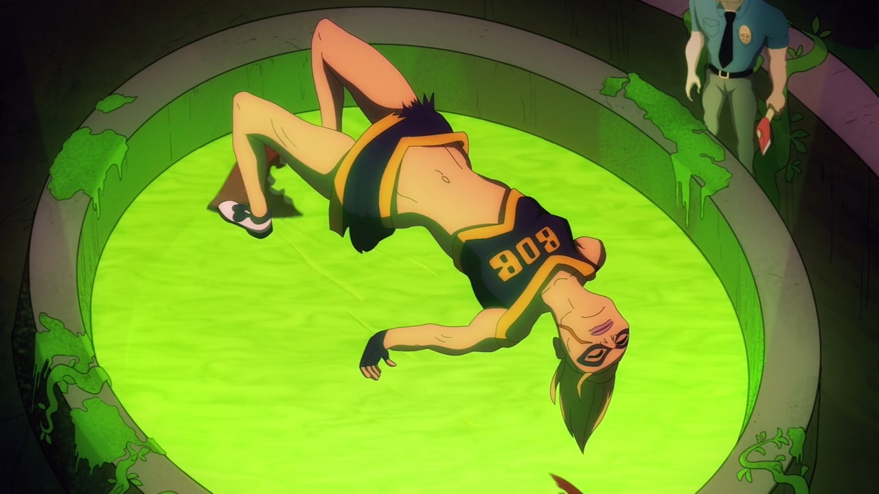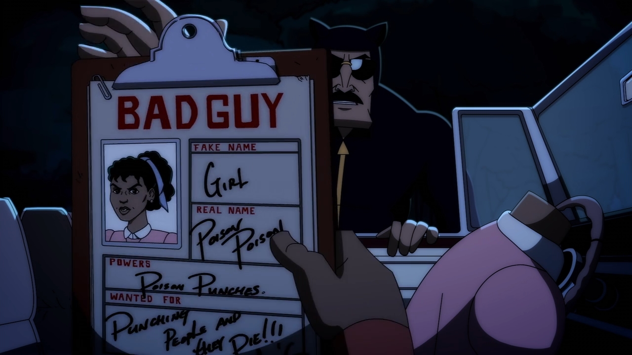 A young couple is getting romantic in a car when Axe Cop shows out of nowhere and beheads the black girl, to her partner's shock. He then explains to him she was a villainess called Poison Poison who uses poison punches to kill people... while all the while her headless corpse keeps pushing the car horn with her boobs.