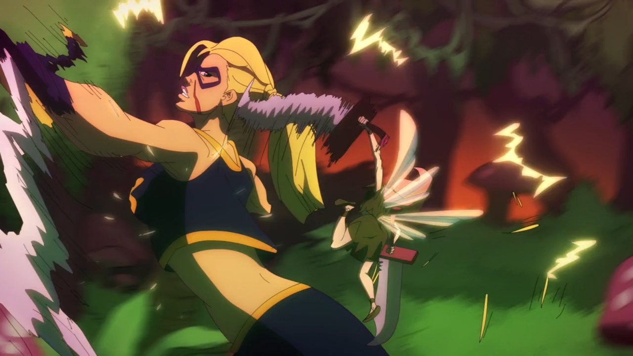 As the press was on hand, this makes Axe Cop and team look bad in the papers, though. So grudgingly, to prove he can have a girl on his team, Axe Cop basically snatches Best Fairy Ever from her TV show through the screen and enlists her. While she is a great fighter, she constantly irritates the business-minded Axe Cop with her flirting and girly things and he ends up hurting her feelings.