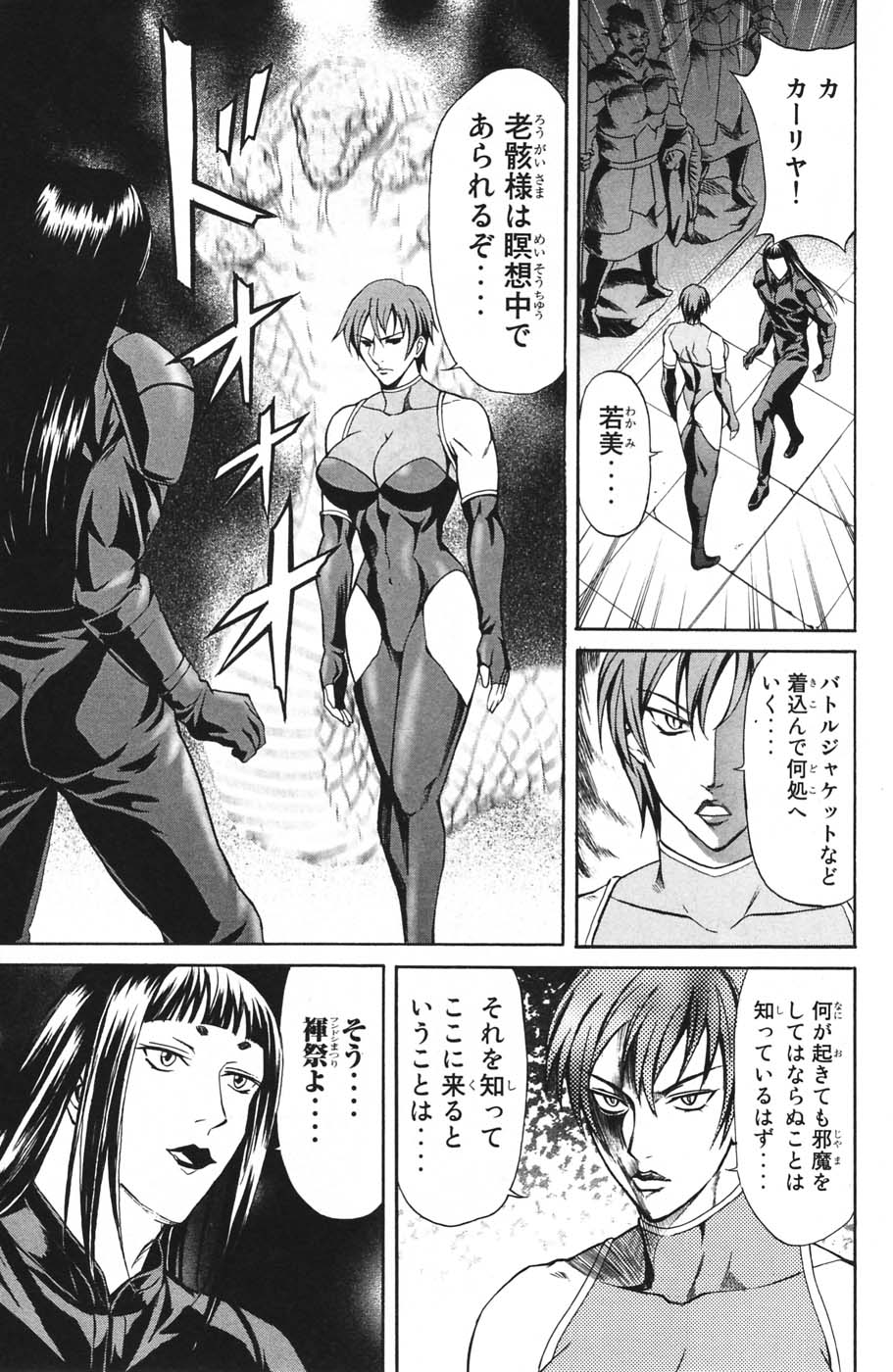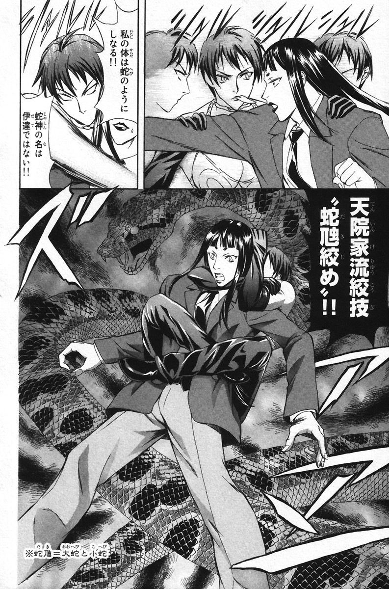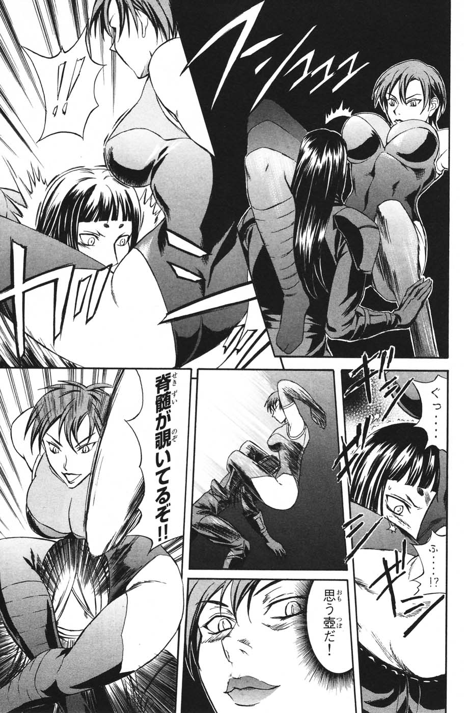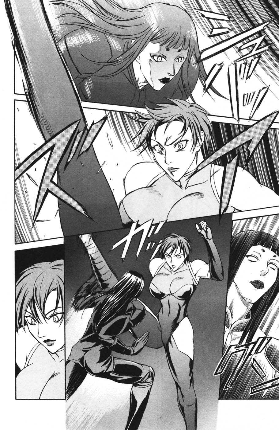 Gotta love anime villains, they always have to go into multi-page/5 minute explanations about how their powers work, not really realizing that this just gives the heroes all the clues they need to beat them. I assume this gal has snake powers, hence the contortions? Man she has epic boobs.