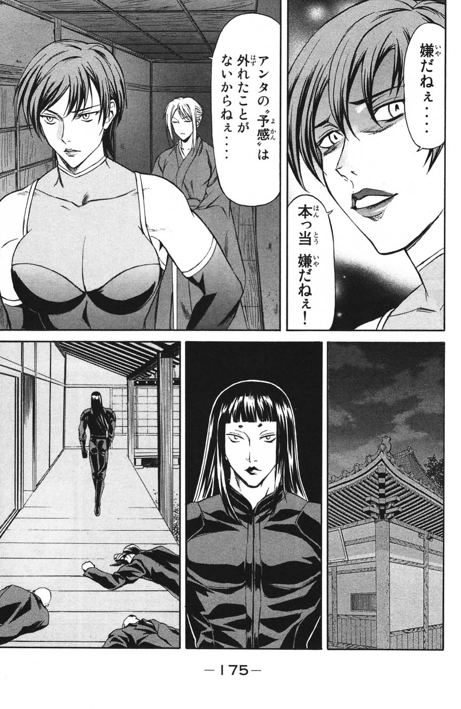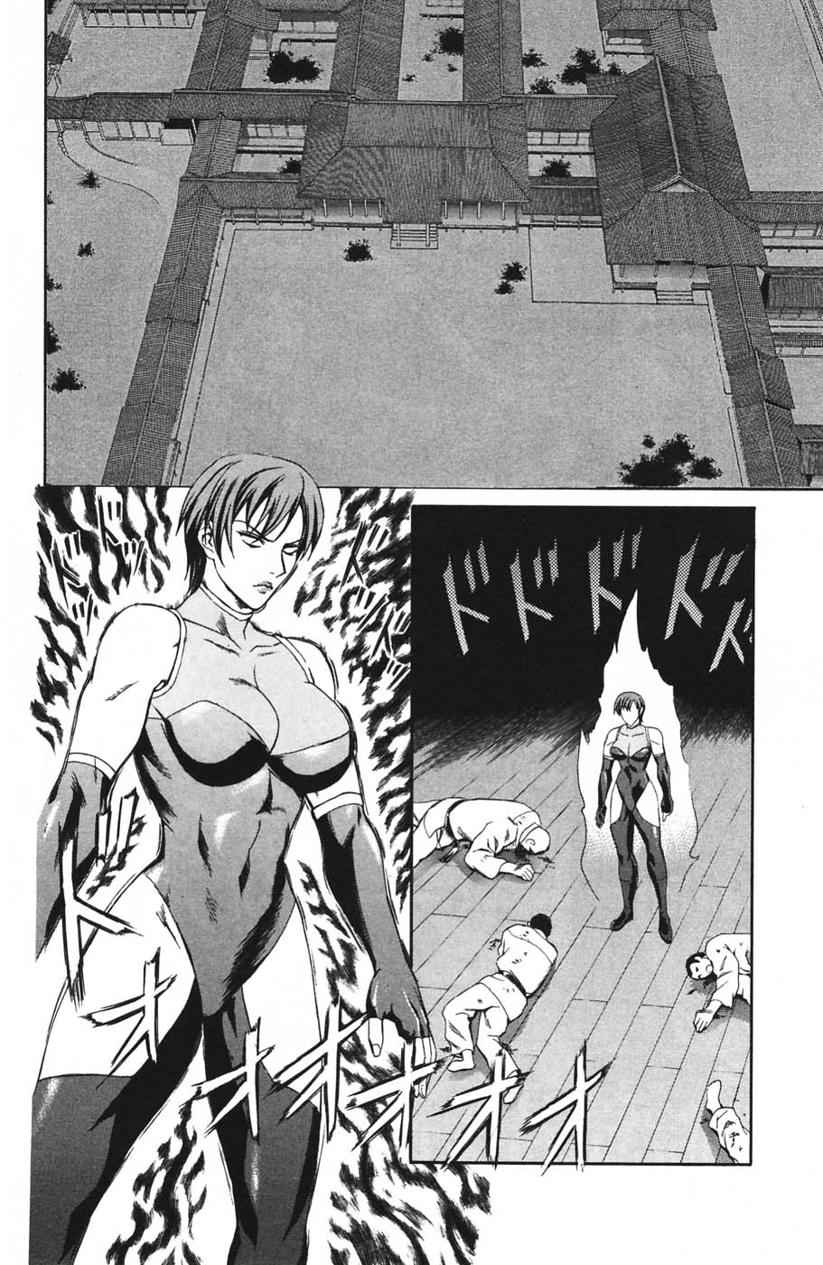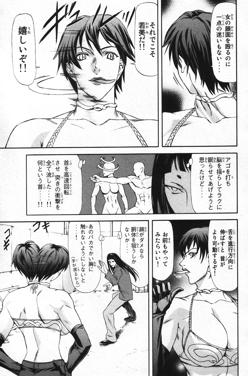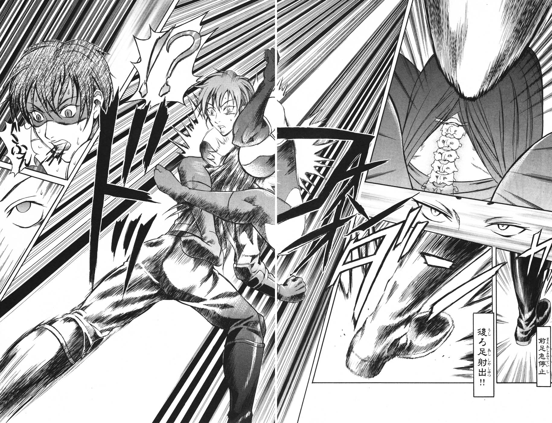 Gotta love anime villains, they always have to go into multi-page/5 minute explanations about how their powers work, not really realizing that this just gives the heroes all the clues they need to beat them. I assume this gal has snake powers, hence the contortions? Man she has epic boobs.