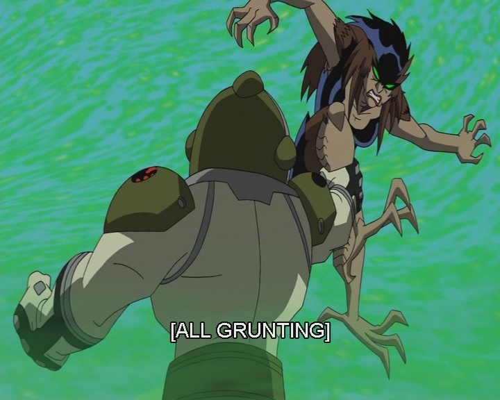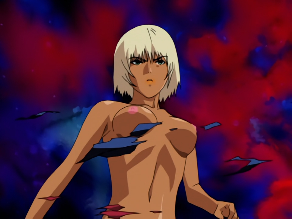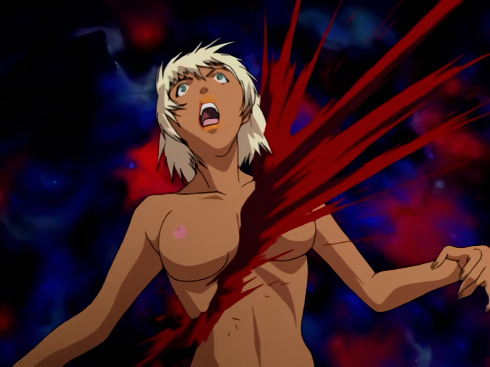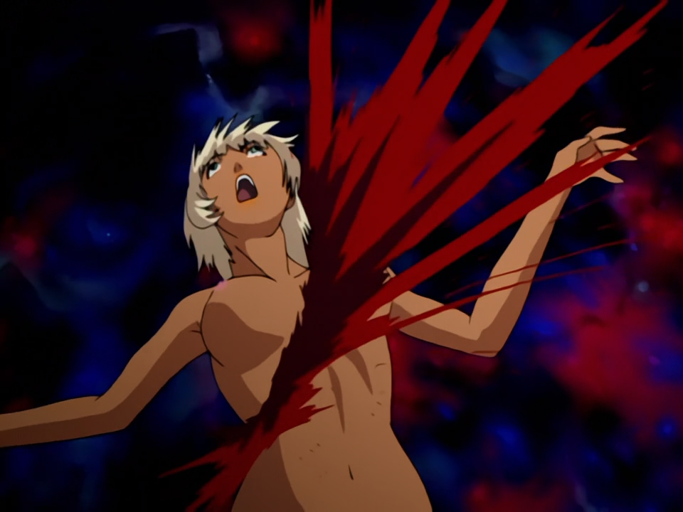 It's typical anime that they have to stop a totally unarmed naked woman by slashing her almost in half. Geez, just grab her by the wrists, that pretty much disarms most women in movies from that era. :P What a waste!