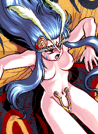 The anthro jaguar lady who first appears randomly in a jungle summons a bunch of naked black haired clone gals, who jump on the guy and literally suck him dry as I guess his semen saved them from some curse, they then ascend into the heavens and cause a conflagration that burns but does not kill him. He then goes through a labyrinth and emerges to an aztec pyramid, accompanied by a creepy old dwarf who is drawn like the Tall Man from Phantasm and carries a suitcase, he gets killed by a giant spider but the dude defeats it. The horned/horny jaguar lady then attacks and bites him, he wrestles her and then grabs and starts to fuck her silly, until she turns into an aztec priestess who thanks her for saving her from a curse before everything turns to blinding light and the dude finds himself elsewhere, alone.