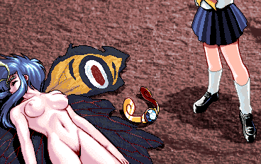 The PC98 card battle game Battle Skin Panic by Gainax, where a girl named Mimi fights henchwomen by stripping herself, has just been ported to Windows and officially released in English. The battles and cutscenes don't actually have much ryona in them but you do get to see the nude corpse of the main villainess after defeating her. Then the final boss is a nuke of all things.