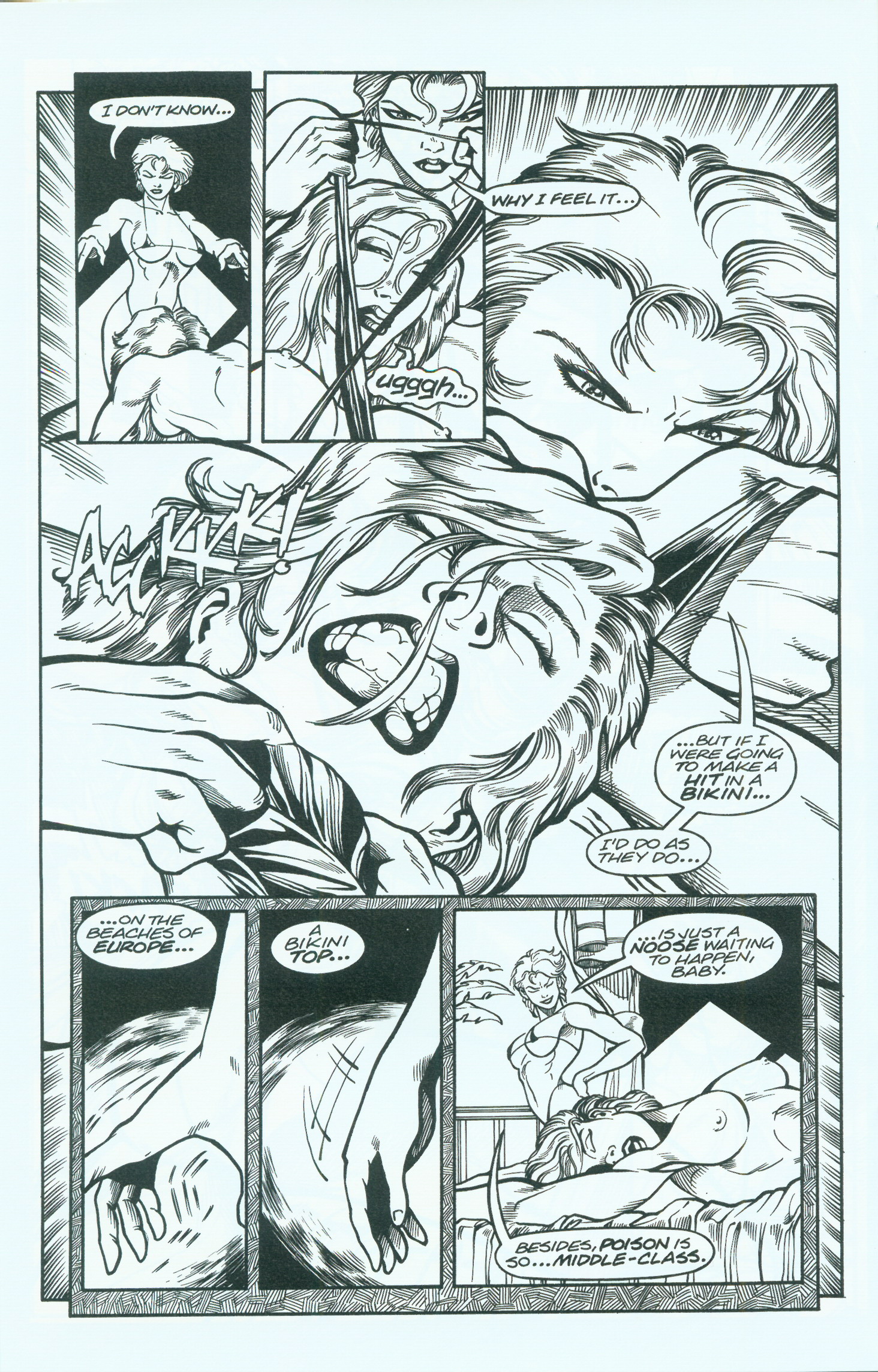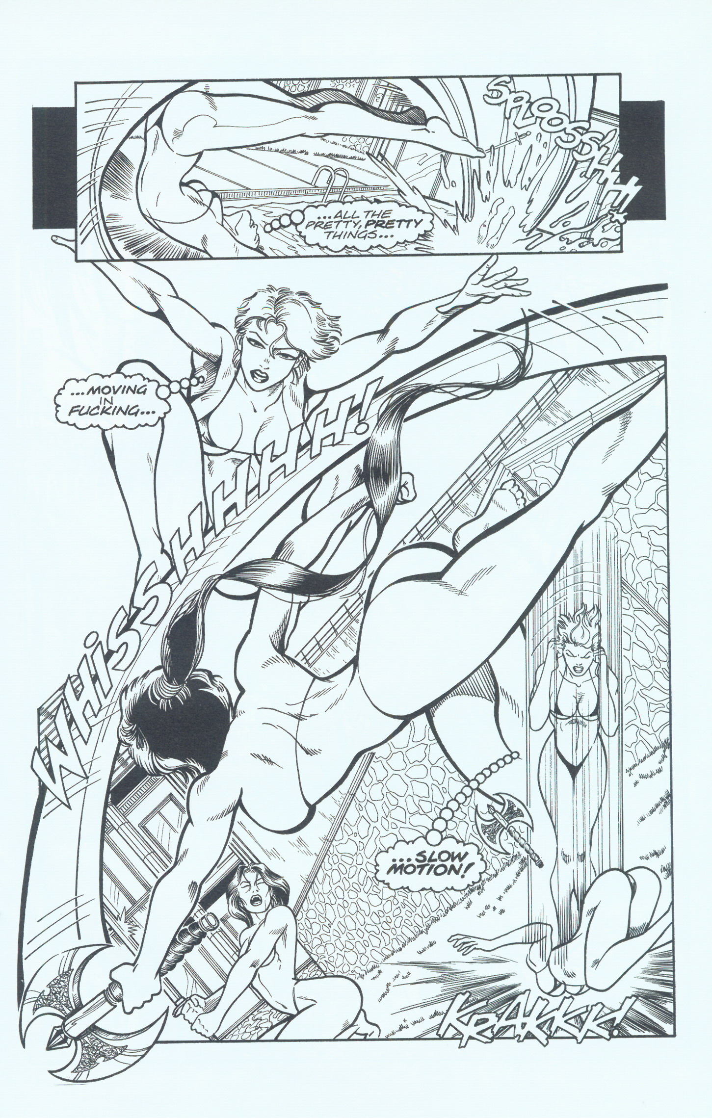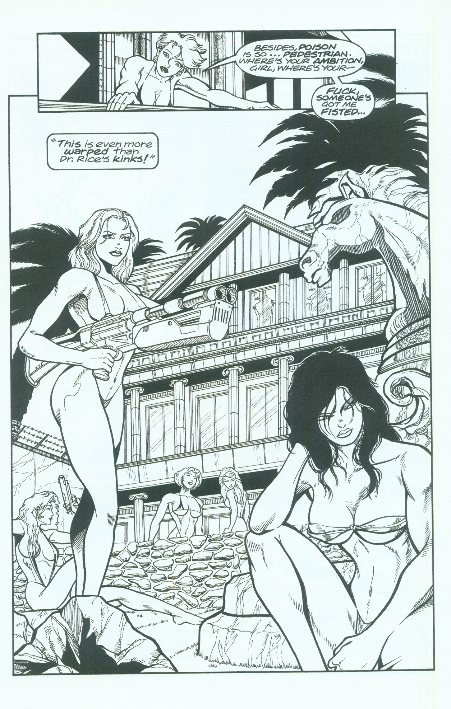 The next story has him be sought out by evil wheelchair-bound scientist guy who looks like Norman Osborn and I guess he and his blonde lover (who is never seen in anything but revealing nighties) want to con him and steal his power with some machine. Guy goes super-saiyan and kills everyone with energy blasts, blonde lady fights her with energy blasts from her mouth and they fly all over the place until they land in the Grand Canyon. He beats blonde lady but tries to reason with her, but then she gets set on fire and incinerated by blonde flying ubermensch psychic guy and his three hussies. The scene that was posted with the japanese chick who has prehensile hair and a tongue coming out of her vagina attacking him is where the first issue ends, she has the upper hand, erm, pussy for a while and squeezes his dick hard, but he ends up whirling her around and tossing her into the fire.