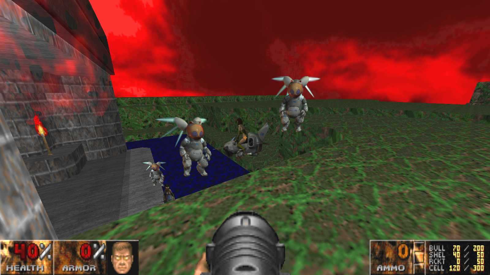 I'll look into the health of the enemies, could be that they slip over a solid shotgun blast on UV. The shotgun is modified too, more pellets and more circular pellet distribution. All basic enemies so far are 80-90 health. The aggression level is still Zombieman, except in melee range, then they go panic mode magdump. I had to replace many higher monsters with rifles because so far I don't have more monster replacements ^^.